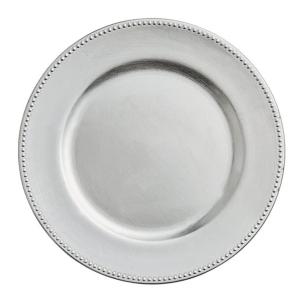 13" Clear Acrylic Charger with Silver Beaded Edge